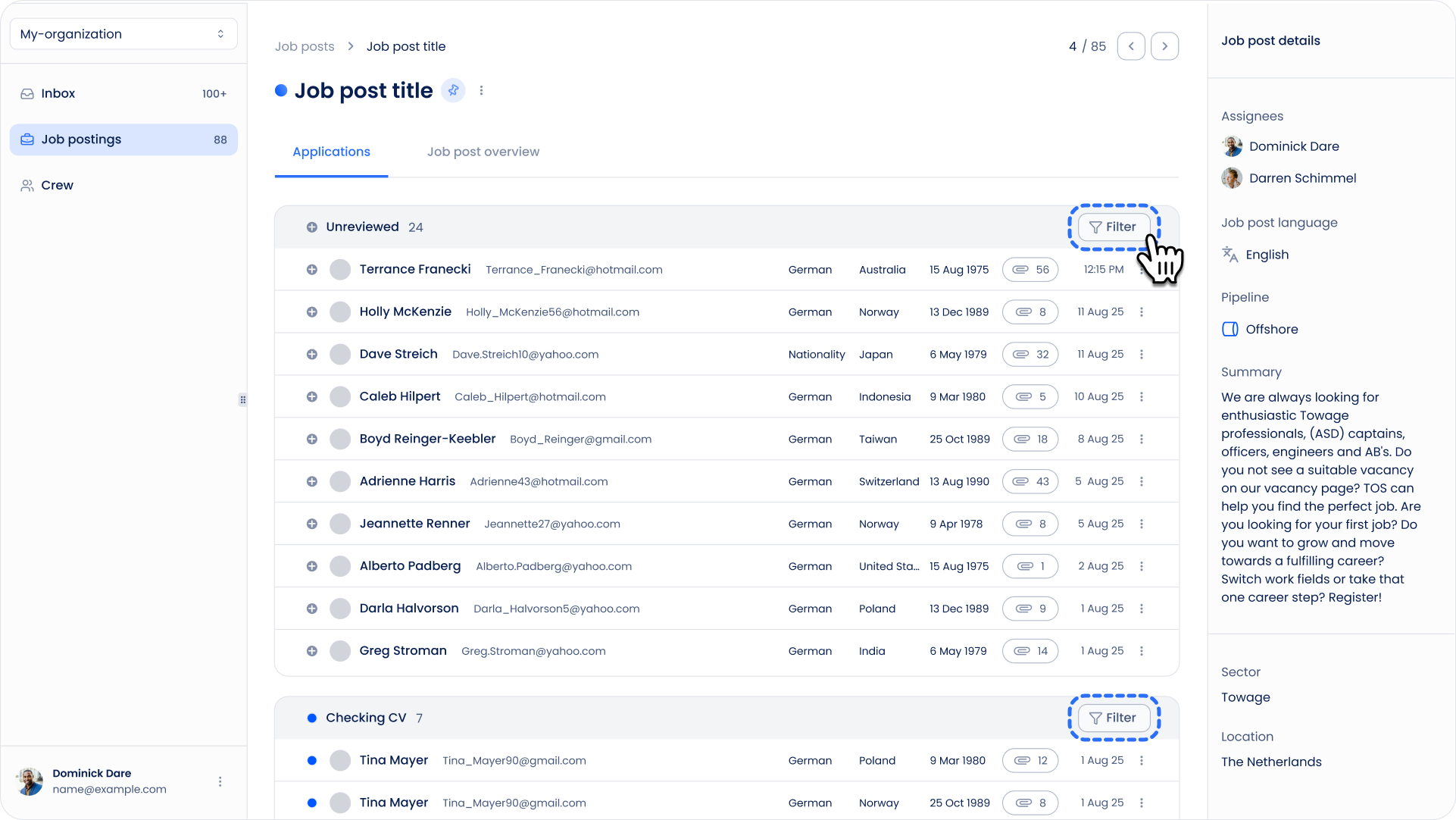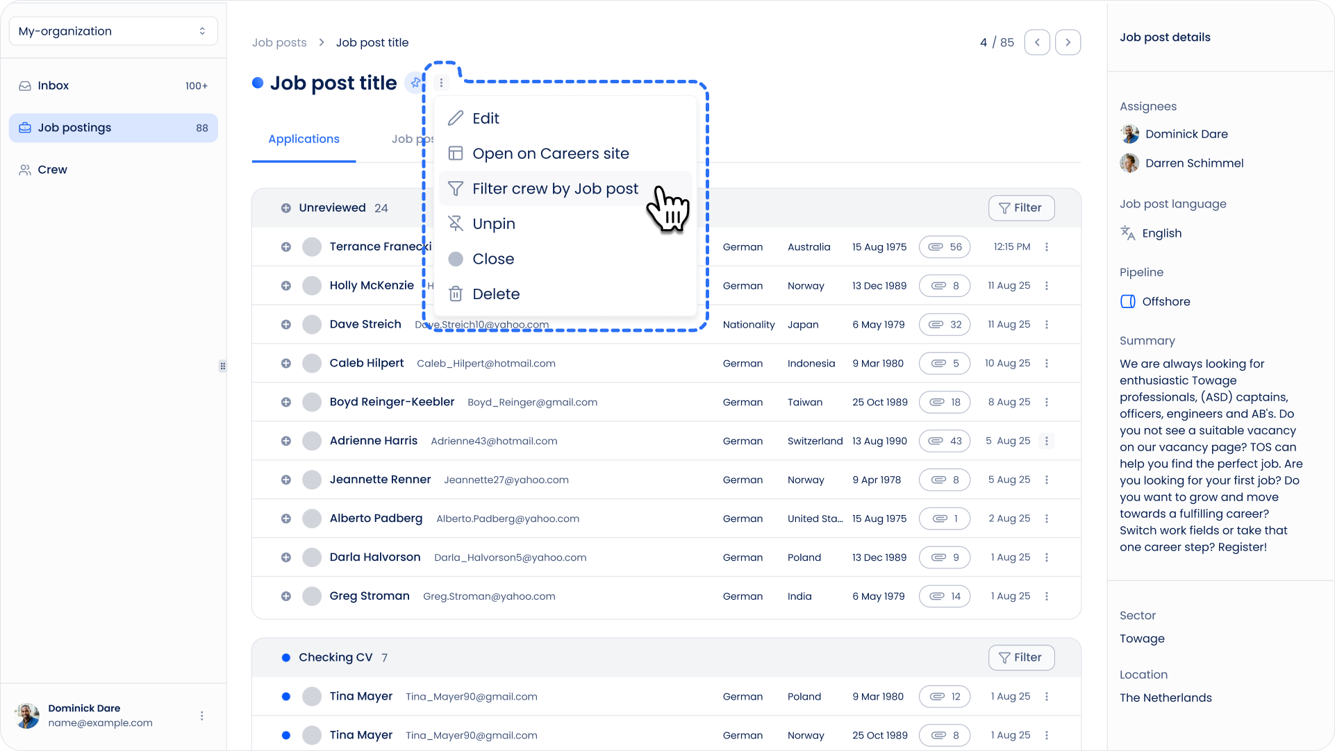 3. Filter Crew by Job Post