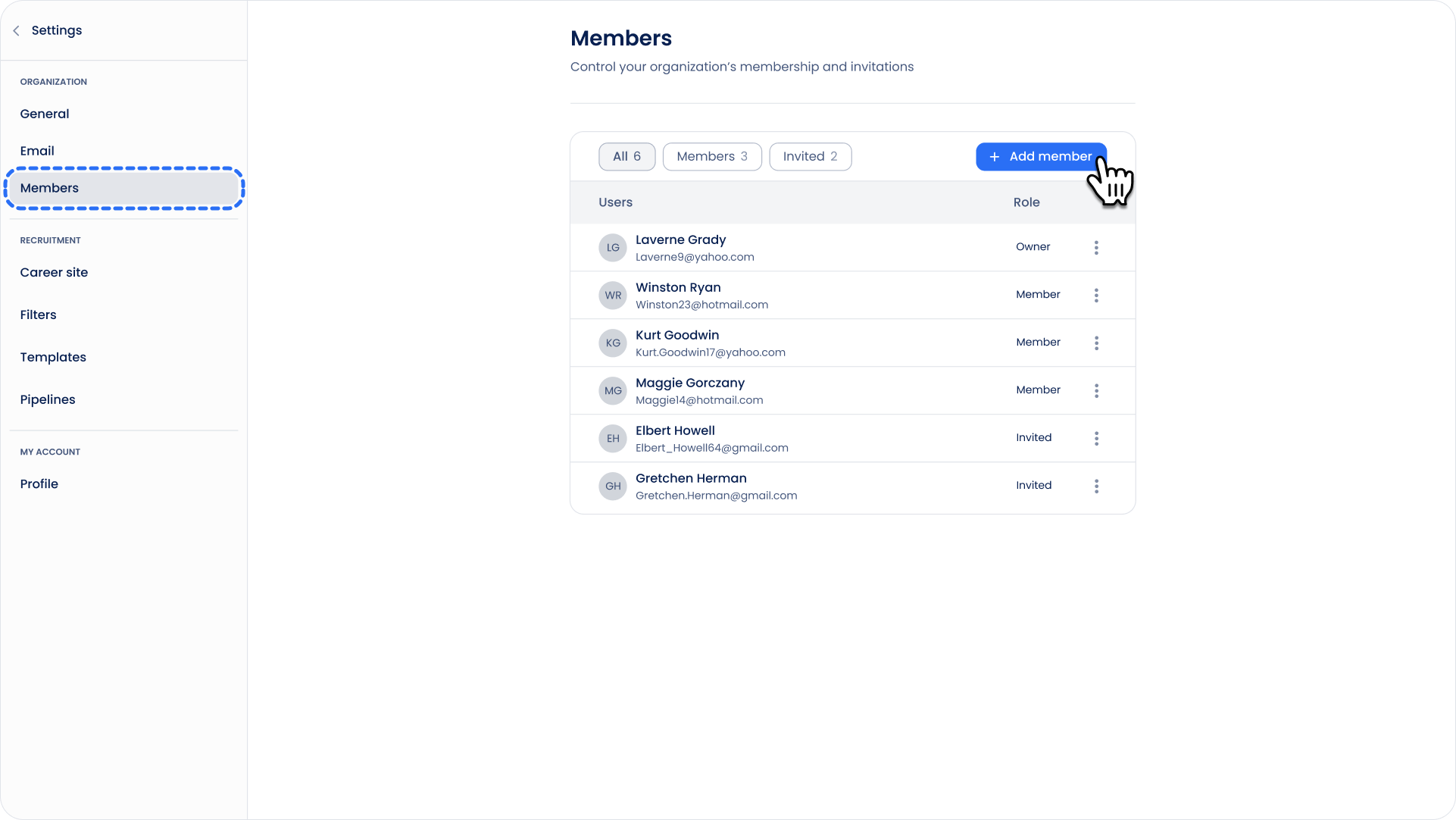 - This section displays all current users who have already been invited and confirmed their participation in your organization.